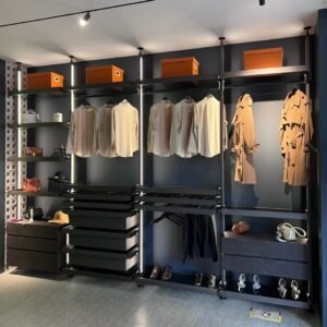 2. Variable rack column style cloakroom: This type of column style cloakroom is made of special materials and has a significant feature, which is the variable rack. Users can freely arrange storage space according to their needs; Because its aluminum alloy has a low density but relatively high strength (close to or exceeding that of high-quality steel), it has good plasticity.
