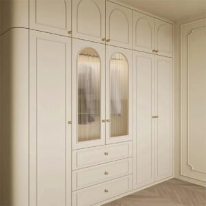 The classical and elegant French style wardrobe is meticulously crafted with intricate designs and luxurious gilded patterns, complemented by a classical cracked white primer, exuding a strong aristocratic court color. French people who love romance and understand life prefer bright color schemes. French style wardrobes are mostly in simple solid colors such as beige, white, and primary colors