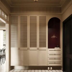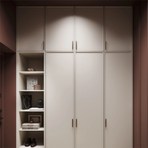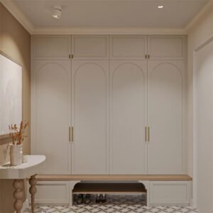 A shoe cabinet (or shoe storage) typically belongs to the category of hallway or entryway furniture, as it is designed to store and organize shoes near the entrance of a home. Shoe cabinets are specifically crafted to address the need for a dedicated storage solution for footwear, promoting an organized and tidy entry space.