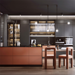 Kitchen cabinets belong to the category of kitchen furniture and storage solutions. They are essential components of kitchen design, providing storage for a variety of kitchen items, including cookware, dishes, utensils, and pantry items. Kitchen cabinets are designed to keep the kitchen organized, functional, and aesthetically pleasing.