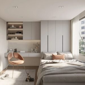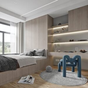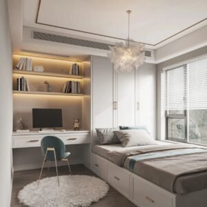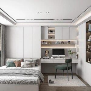 The fresh and elegant color combination spreads out the perspective field and minimalist visual sense, interweaving the body and lines to meet the needs of sleep, storage, learning, entertainment and other daily life. The combination design appears reasonable and practical, and the customized agility and rich functions are irreplaceable.