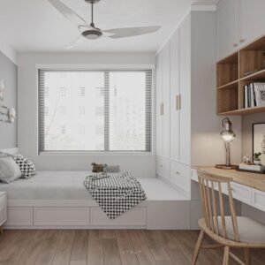The integrated customization of tatami mats and desks combines rest, study, and storage functions, with a flexible and versatile design that efficiently utilizes space to meet the needs of storage and multifunctional space, achieving multiple uses in one room.